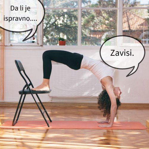 Međutim, ako želiš da se udubiš u ovu temu, odgovor je – kao i za većinu stvari u jogi – ZAVISI. Zavisi od toga ko izvodi pozu, šta tačno radi, i na koji način to radi.